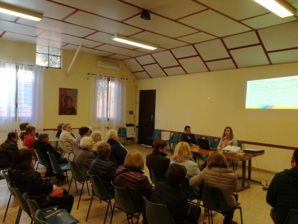 Nel periodo dal 5 marzo al 10 maggio 2019 l’attività delle visite ha lasciato spazio a 18 incontri di promozione della salute, per un totale di 34 ore, guidati da un medico del Policlinico Gemelli e un’infermiera della Cooperativa OSA, relativi alla Prevenzione del Diabete, all’Alimentazione, e all’Igiene degli Alimenti.